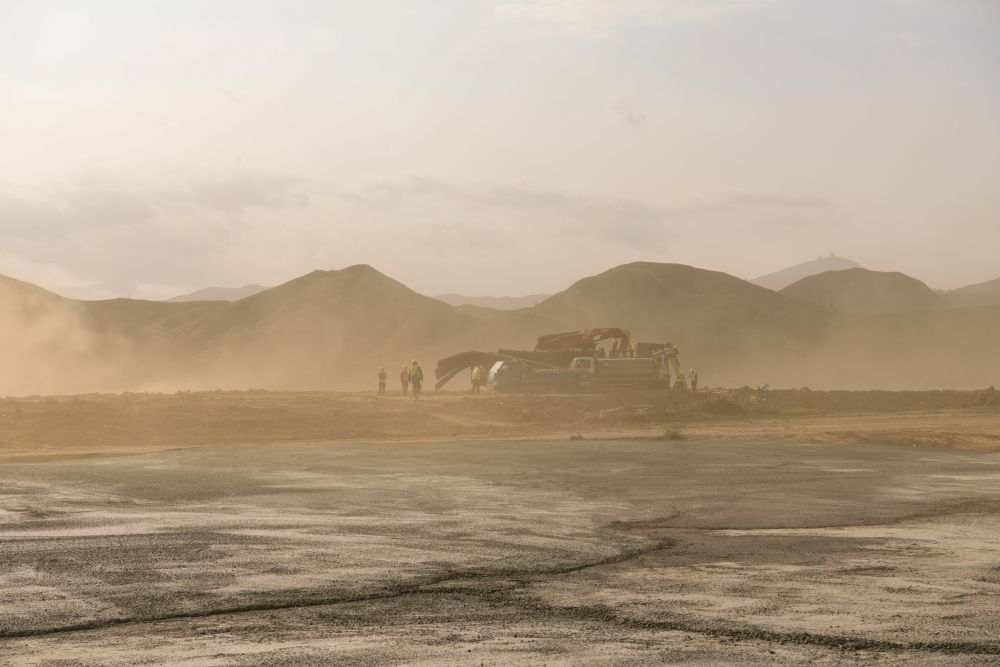 转而连降暴雨,气温急转直下,雨水和黄土和成泥浆灌进工人生活区的帐篷,行军床和被褥漂在泥水里,但为了抢工期,建设者们仍在雨中夜以继日奋战。