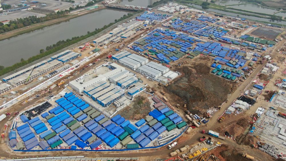 2月下旬,在香港新冠肺炎疫情高发、抗疫形势异常严峻的时刻,应特区政府请求,中央批准在落马洲河套地区援建应急医院和方舱设施。