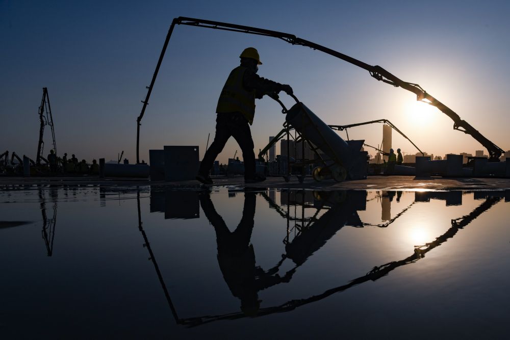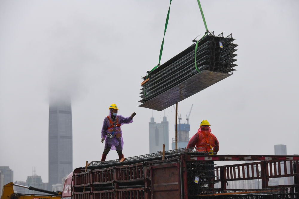 南国三四月,天气变幻无常,烈日当空,在许多建设者脸上刻下了口罩的印记。