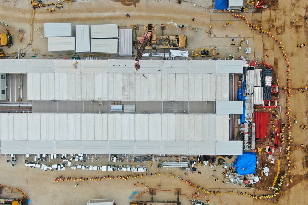 3月6日,中央援港应急医院开始大规模施工,这是当天拍摄的建设现场。