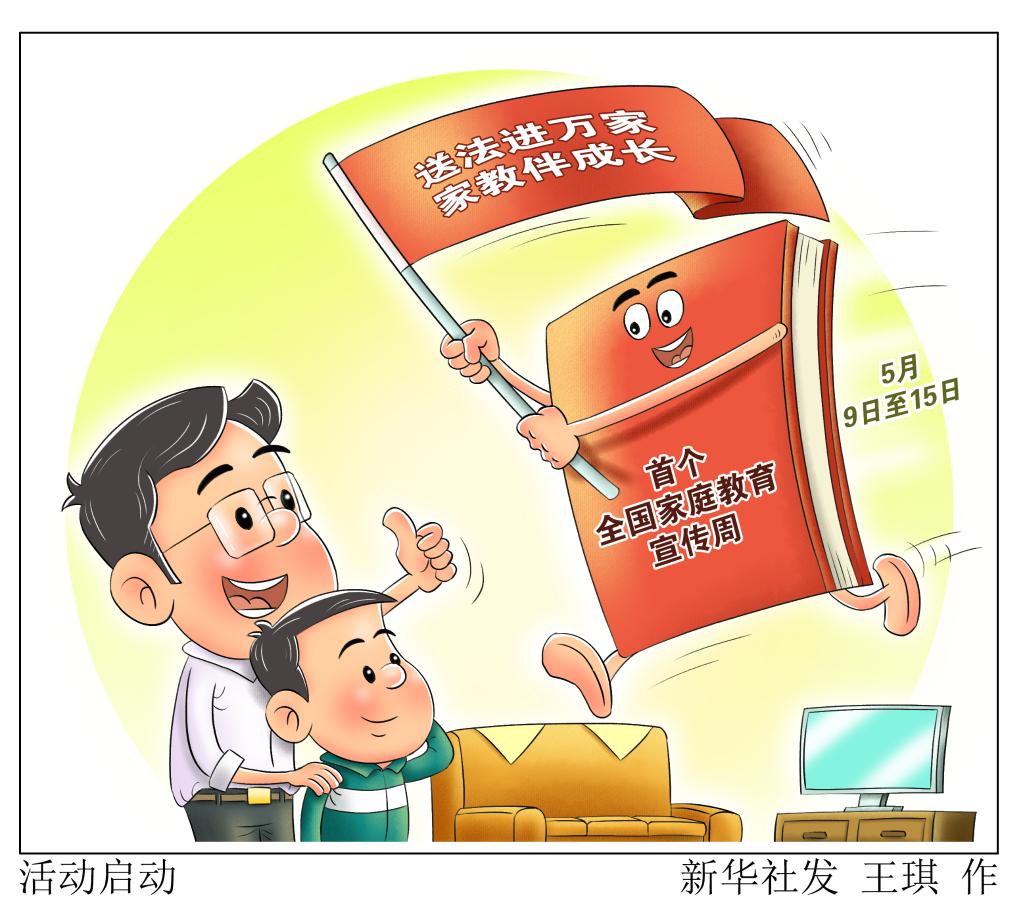 新华社北京5月8日电(记者黄玥)记者8日从全国妇联获悉,2022年5月15日国际家庭日所在周为首个全国家庭教育宣传周,全国妇联、教育部近日联合发出通知要求各地在9日至15日宣传周期间,以“送法进万家 家教伴成长”为主题,面向广大家庭广泛开展家庭教育宣传展示和主题实践活动。