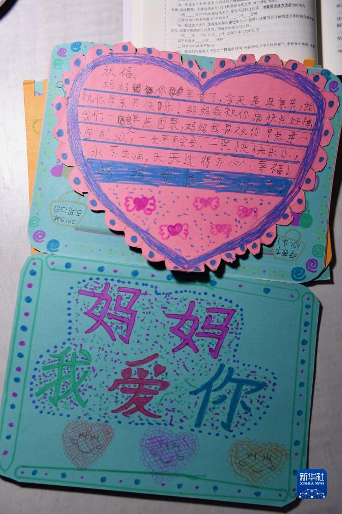 这是王林慧在2013年母亲节送给妈妈的贺卡(5月3日摄)。新华社记者姜克红摄