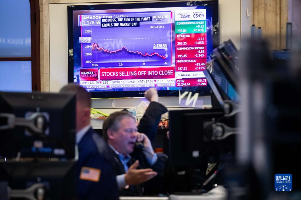 截至当天收盘,道琼斯工业平均指数比前一交易日下跌653.67点,收于32245.70点,跌幅为1.99%;标准普尔500种股票指数下跌132.10点,收于3991.24点,跌幅为3.20%;纳斯达克综合指数下跌521.41点,收于11623.25点,跌幅为4.29%。