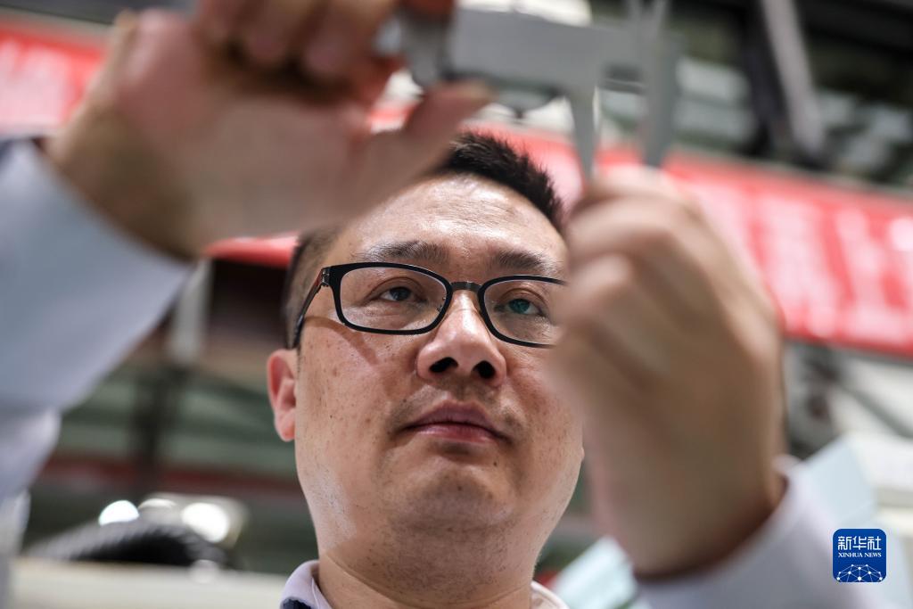 4月28日,孙刚在测量零件尺寸。新华社记者 欧东衢 摄