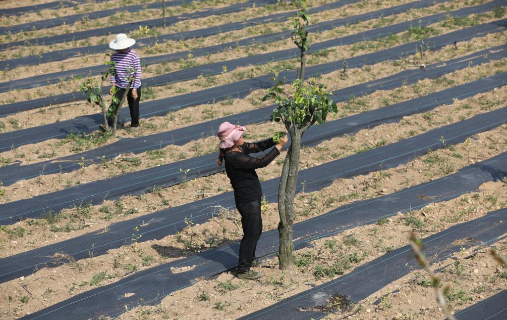 瓦窑村村民在果园里劳作。 新华社记者潘德鑫 摄