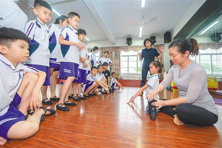 5月6日,在海南(海口)特殊教育学校,老师在给学生们上课。2022-05-07 08:40:39 星期六 -