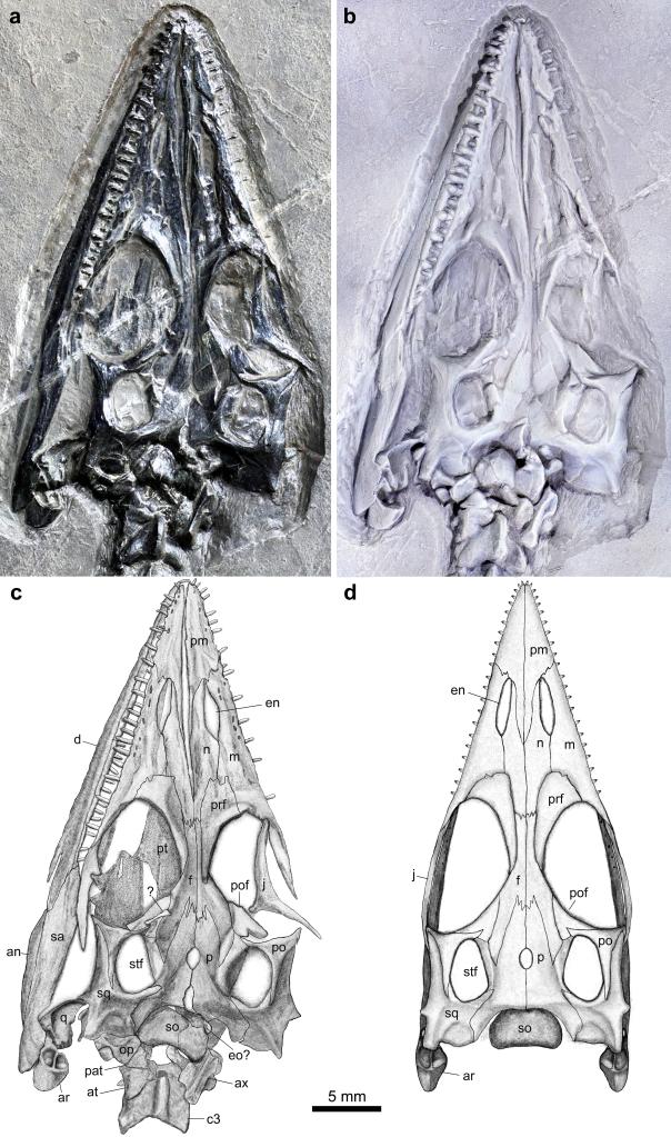 长尾红河龙头骨及复原图。(中科院古脊椎所供图)