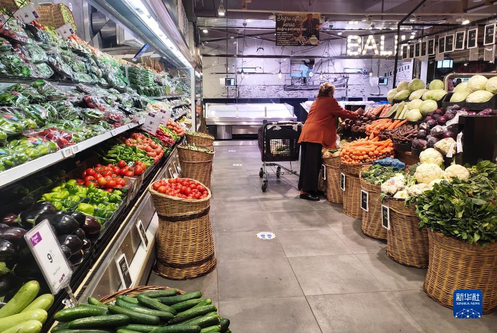 5月10日,在土耳其伊斯坦布尔,顾客在一家超市选购蔬菜。