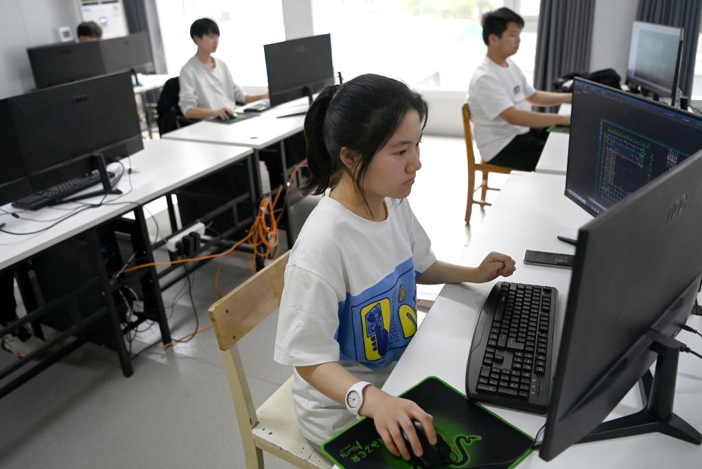 西安建筑工程技师学院的焦玥在备战世界技能大赛数字建造项目(4月27日摄)。新华社记者 刘潇 摄
