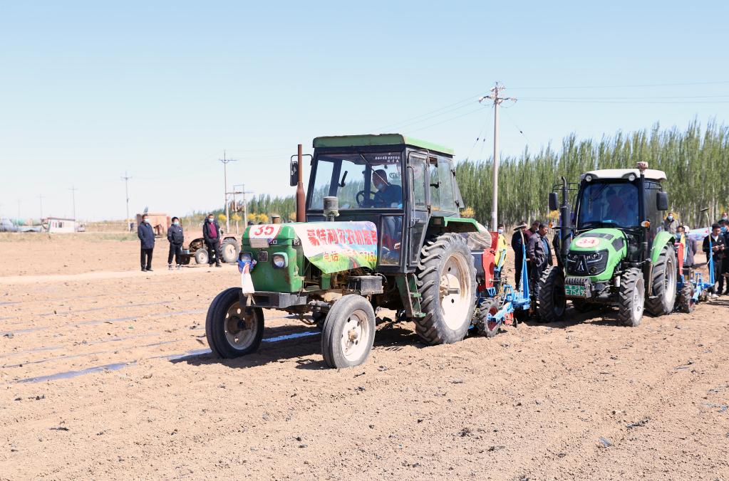 眼下正是河套地区种植大豆的关键时期,在巴彦淖尔市临河区干召庙镇的农田里,农机手驾驶拖拉机进行大豆玉米带状复合种植,依次完成铺地膜、施肥、播种等工序。干召庙镇副镇长贾迎春说:“全镇4.6万亩小麦已全部出苗,17万亩玉米陆续出苗,总体苗情好于常年。大豆玉米带状复合种植面积现已达2852亩,计划完成种植4170亩。我们的大豆播种进度比较快,整体工作进展顺利。”