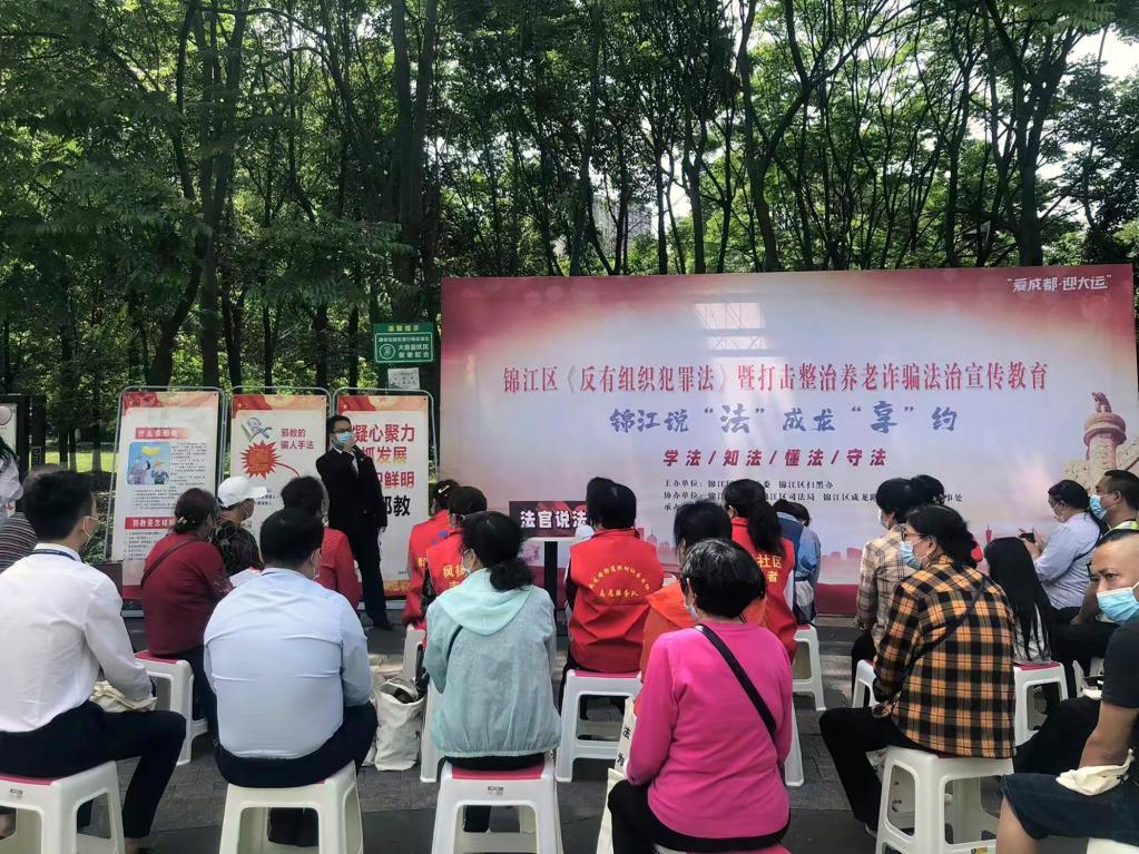 四川省成都市锦江区人民法院刘俊佚法官到锦江区成龙路街道枫树社区开展《反有组织犯罪法》现场普法活动(4月28日摄)。(受访者提供)