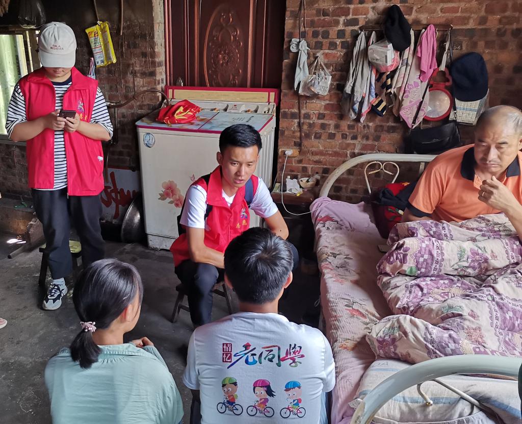 “00后”西部计划志愿者余雄伟(后排左二)在贵州省望谟县打易镇走访困难群众。(受访者供图)