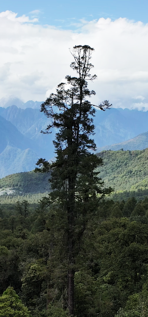 墨脱位于西藏东南部,地处雅鲁藏布江下游,拥有丰富的生物多样性和广阔的原始森林。不丹松主要分布在海拔1400米至2500米的山地雨林与亚热带气候区,要测量树高难度很大。
