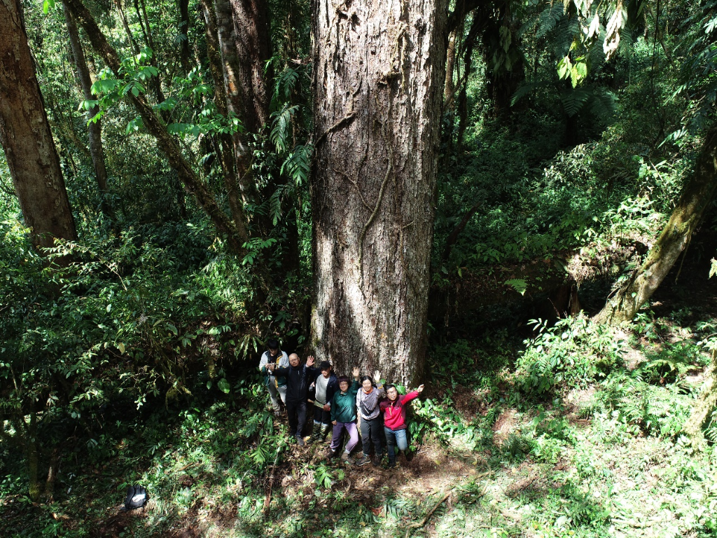 图为测量团队成员与大树合照。(受访者供图)