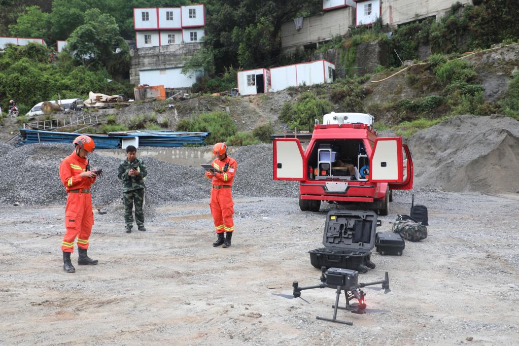 5月14日,云南省森林消防总队救援人员使用无人机开展救援工作。(云南省森林消防总队供图)