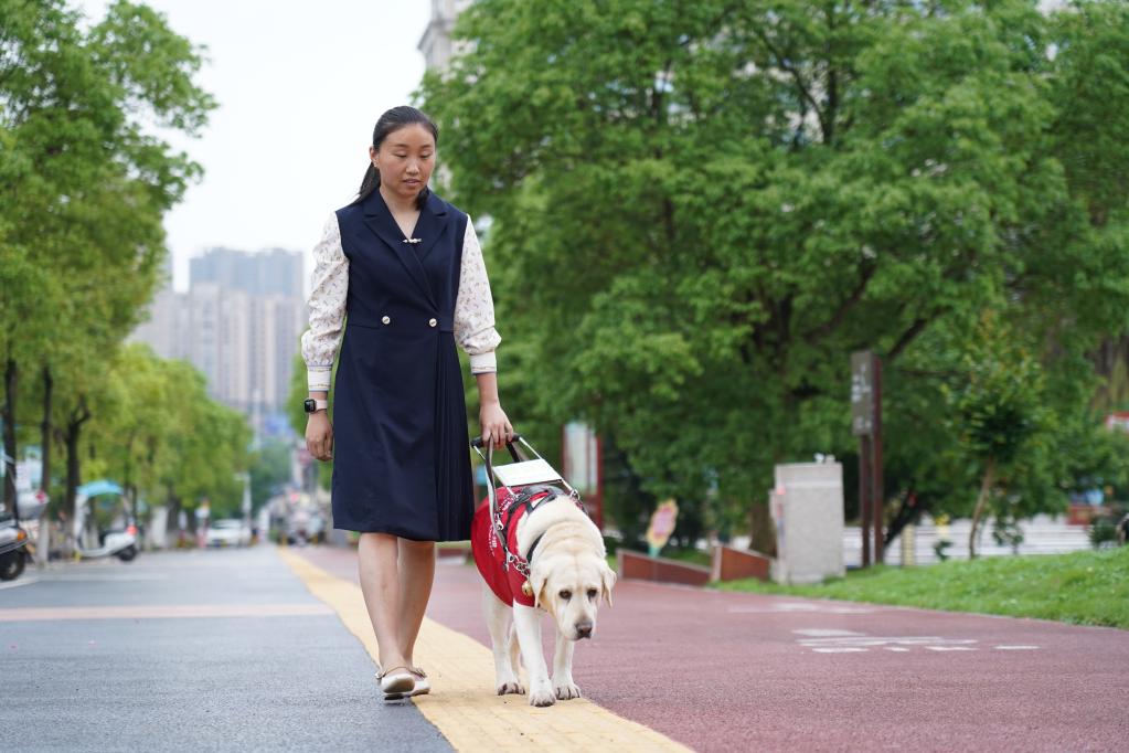 贾君婷仙带着她的导盲犬爱莎出门。新华社记者 余刚 摄