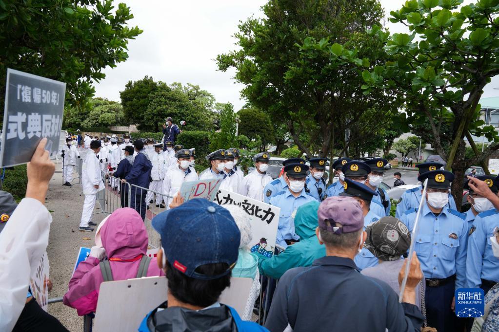 15日是冲绳回归日本本土50周年纪念日,日本政府和冲绳县政府当天在东京和冲绳两地举办纪念仪式。大批冲绳民众在会场外强烈抗议,要求削减冲绳美军基地规模甚至将美军基地全部撤出。1945年4月,美军占领冲绳。1972年5月15日,冲绳的施政权被正式交还给日本政府。但冲绳仍保留了大量美军基地,目前约70%的驻日美军基地集中在冲绳县。