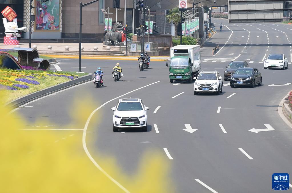 5月16日拍摄的上海市徐家汇路口街景。