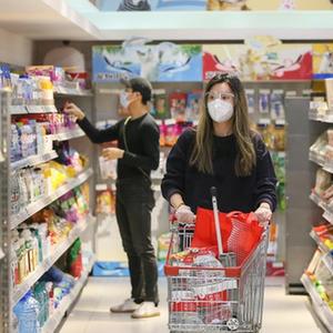 5月16日,在上海市徐汇区一家超市门店,市民在选购商品。