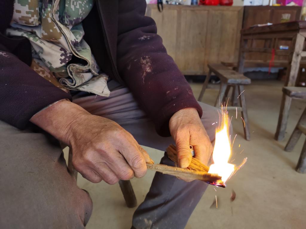 近年来,由于电力设备超期使用,线路老化,导致经常停电,“松光亮”成了老田家照明的“担当”,这种从枯死的松树上劈下来的木条,富含松油,燃烧时间长,可以就地取材。
