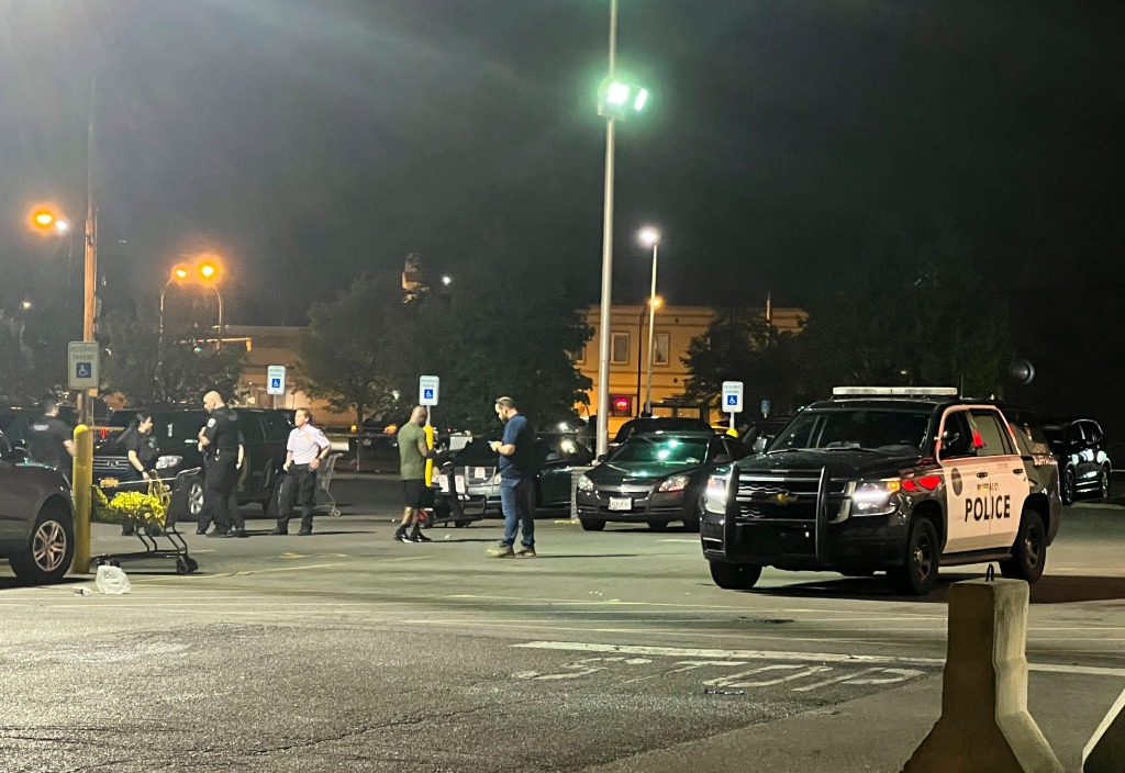 5月15日凌晨,警察在美国纽约州布法罗市的枪击案现场工作(手机拍摄)。新华社发(张杰摄)
