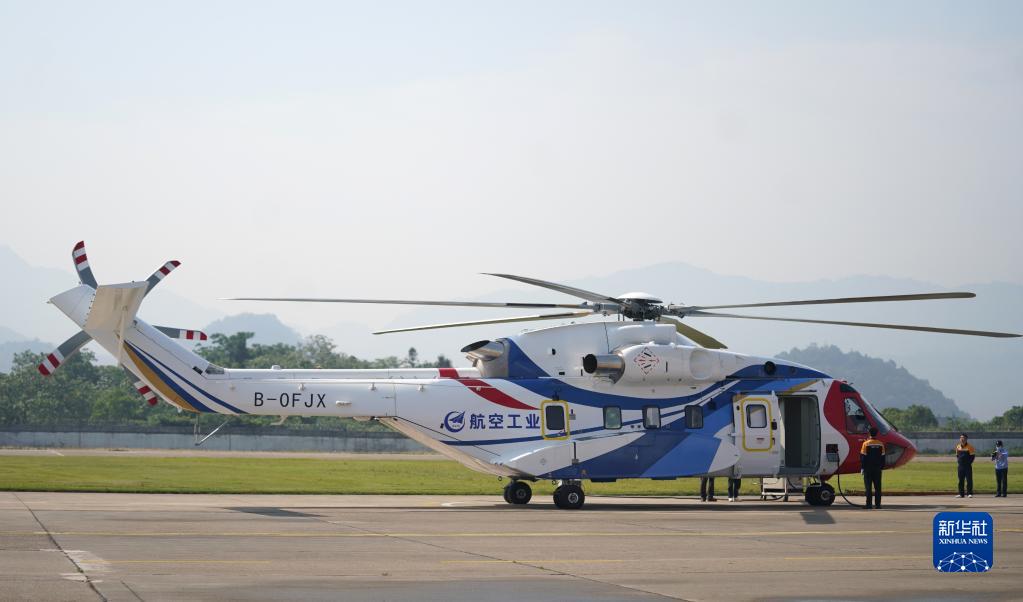 5月17日,在江西景德镇吕蒙机场,AC313A直升机准备起飞。新华社记者 胡晨欢 摄