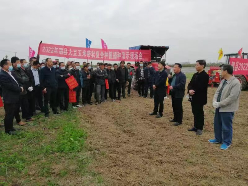 这是2022年泗县大豆玉米带状复合种植播种演示现场会的现场。(采访对象供图)