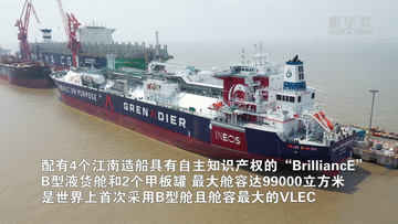 该船属于江南造船“Panda(熊猫)”系列,设计总长230.0米、型宽36.6米、型深22.5米、配有4个江南造船具有自主知识产权的“BrilliancE”B型液货舱和2个甲板罐,最大舱容达99000立方米,是世界上首次采用B型舱且舱容最大的VLEC。