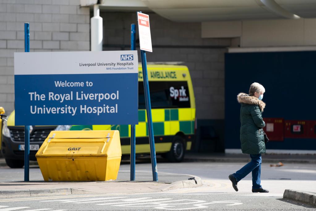 4月1日,一名女子经过英国利物浦的一家医院。新华社发(乔恩·休珀摄)
