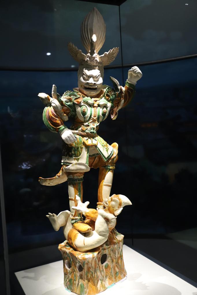 这是隋唐大运河文化博物馆中展出的唐三彩天王俑(资料照片)。(受访者供图)