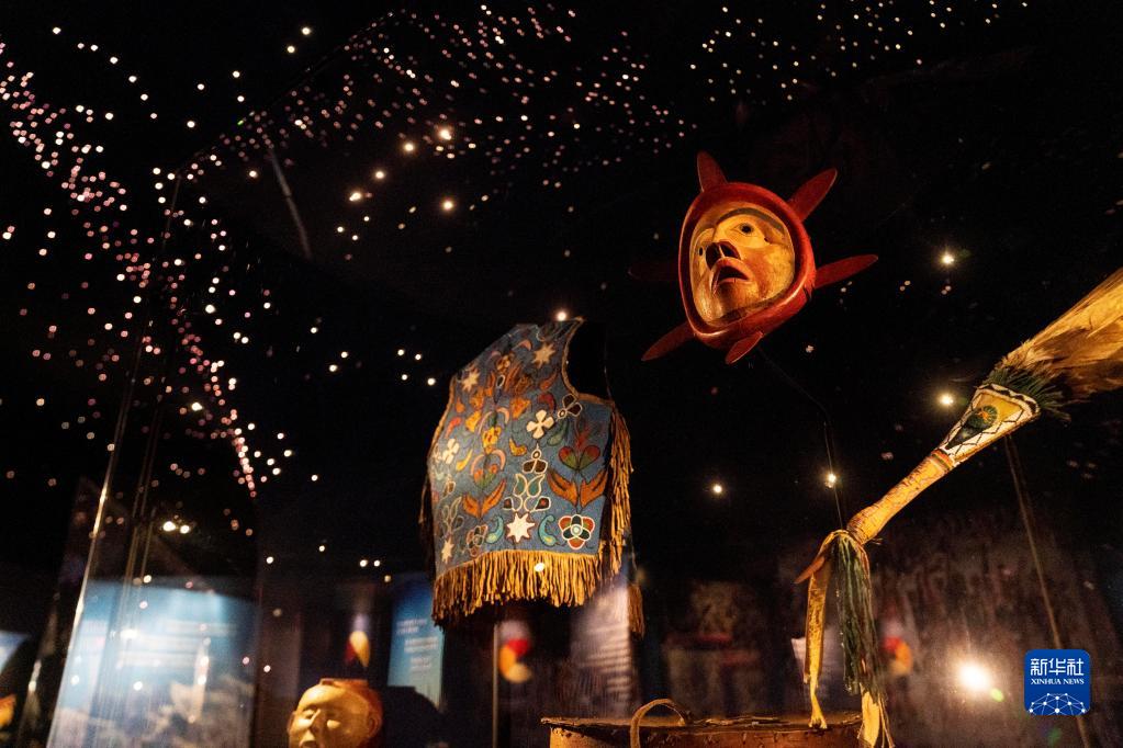 这是5月17日在美国华盛顿拍摄的美国印第安人国家博物馆里的服饰和面具。