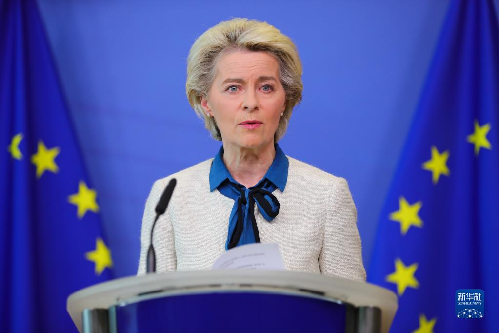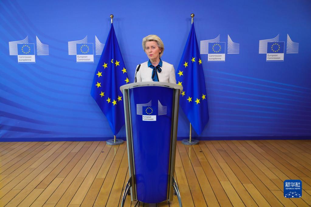 5月18日,欧盟委员会主席冯德莱恩在比利时布鲁塞尔的欧盟委员会总部发言。新华社记者 郑焕松 摄