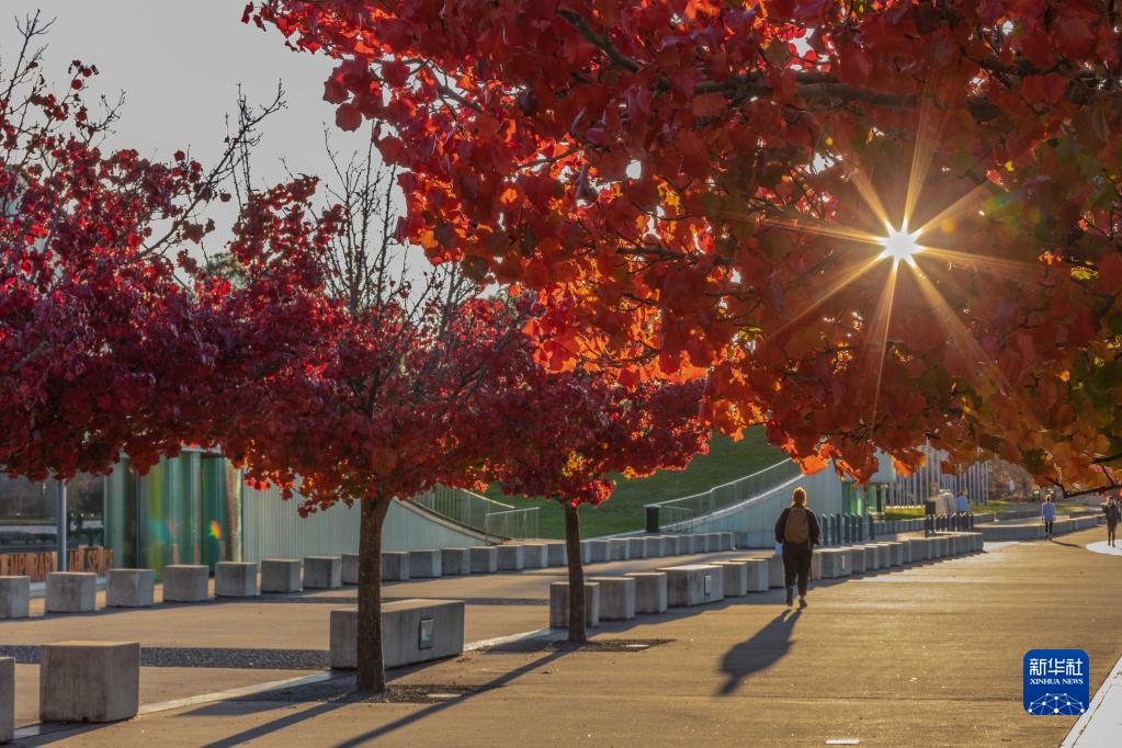 澳大利亚堪培拉正处深秋时节,各种颜色的树叶将城市点缀得多姿多彩。
