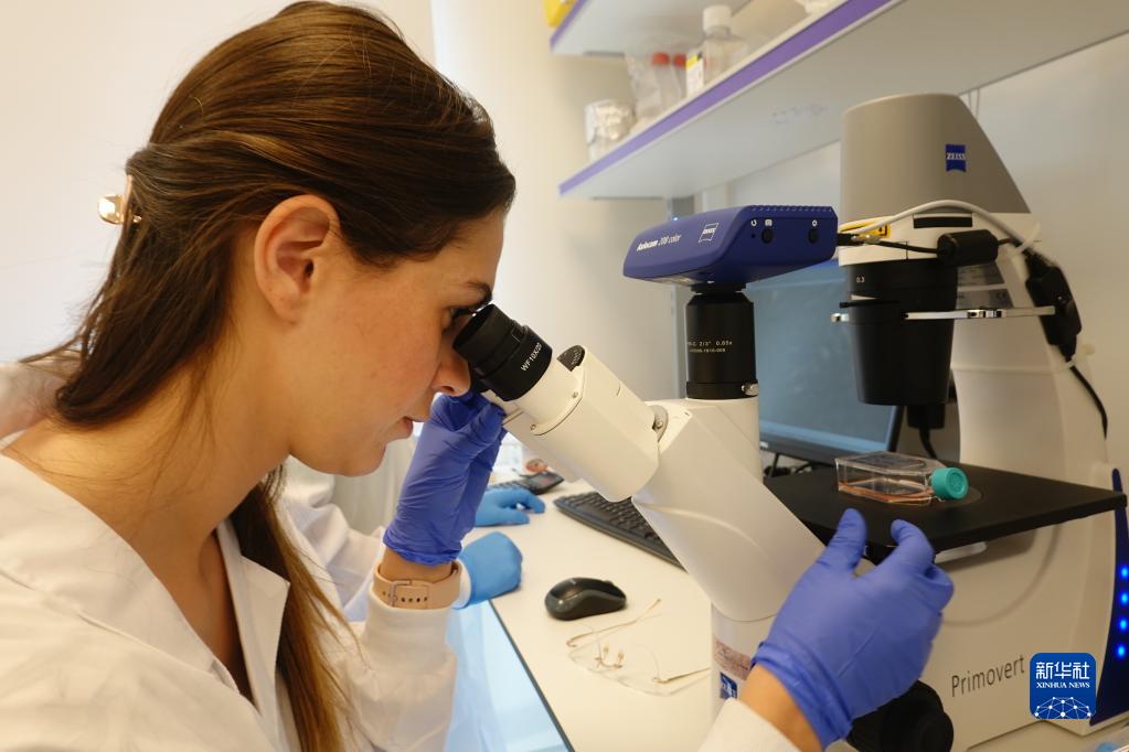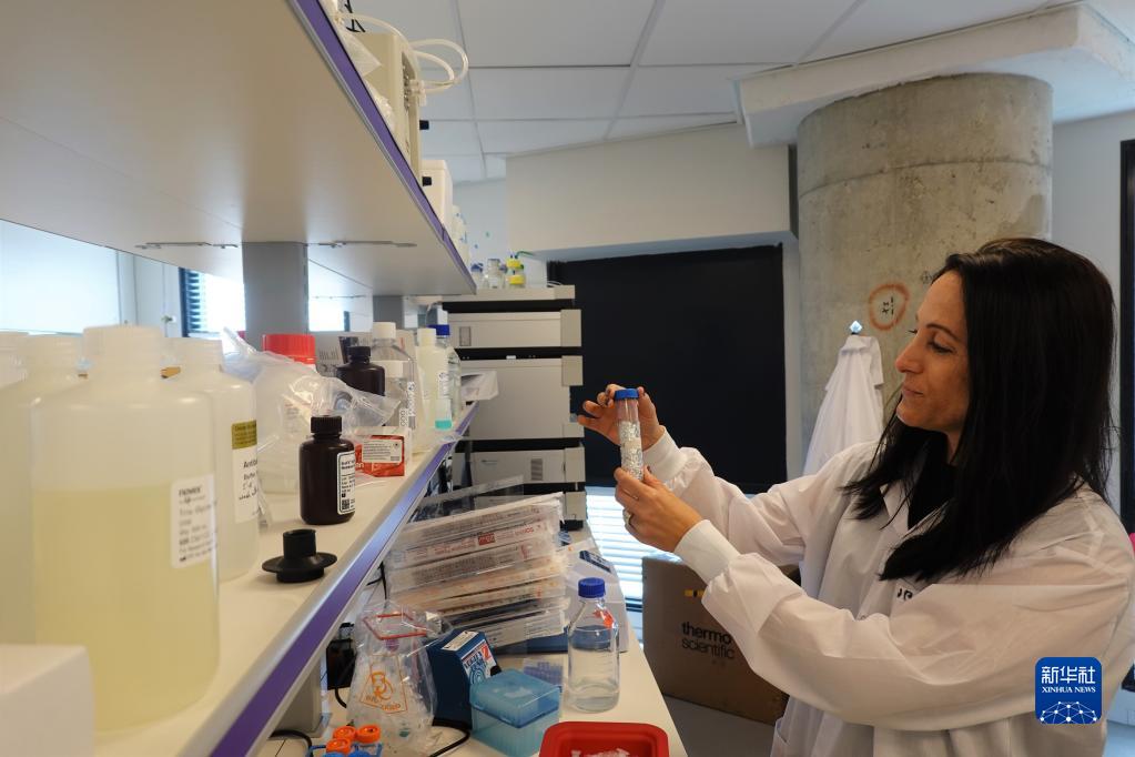 5月11日,生物科学家努丽特·阿尔戈夫-阿尔加曼在位于以色列雷霍沃特的Wilk公司实验室里工作。新华社记者 王卓伦 摄