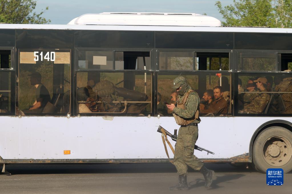 5月20日,载着乌克兰武装人员的巴士驶离马里乌波尔。新华社发(维克托 摄)