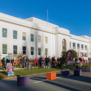 5月21日,在澳大利亚堪培拉一处投票点,民众参加选举投票。新华社发(储晨摄)