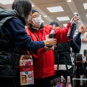 2021年11月18日,顾客在日本东京一家大型超市选购刚上市的博若莱新酒。新华社发(克里斯托弗·朱摄)
