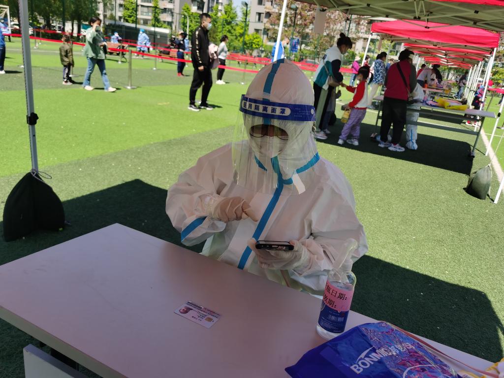 顾不上和女儿多说话,因为核酸检测信息录入不能有差错,只要一上岗,我的神经就高度紧绷。看着居民们排队等待,我比他们还要着急。为了能让大家早些完成核酸检测,我和社区工作者们一起维护秩序,优化流程,为老年人、学生等特殊群体开辟绿色通道,为晚上回家的上班族加班加点……只要能尽快战胜疫情,苦点累点都值得!