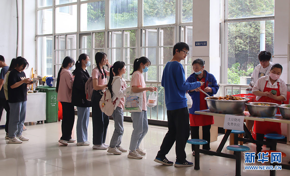 新华网武汉5月22日电(连迅、冯宁萱)土豆烧鸡,免费供应!近日,在湖北大学通识教育学院食堂里,同学们吃上了免费的土豆烧鸡块。原来,同学们自己动手栽种的土豆成熟了,学校将土豆烹制后免费提供给全院学生食用。