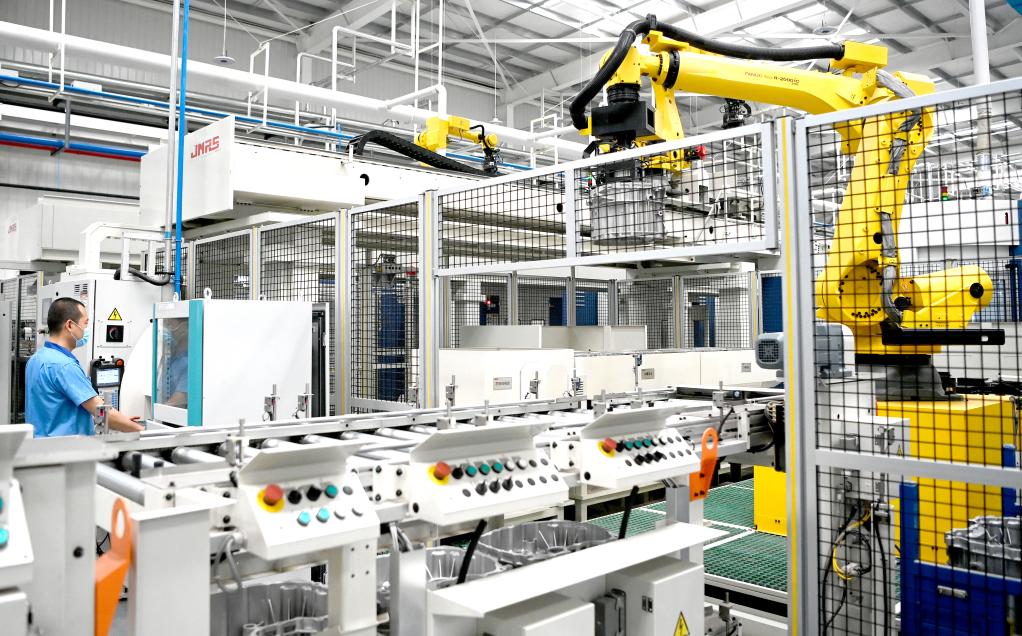 法士特西安高智新公司变速器零件数字化生产线生产现场。新华社记者刘潇 摄