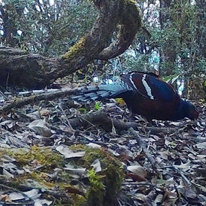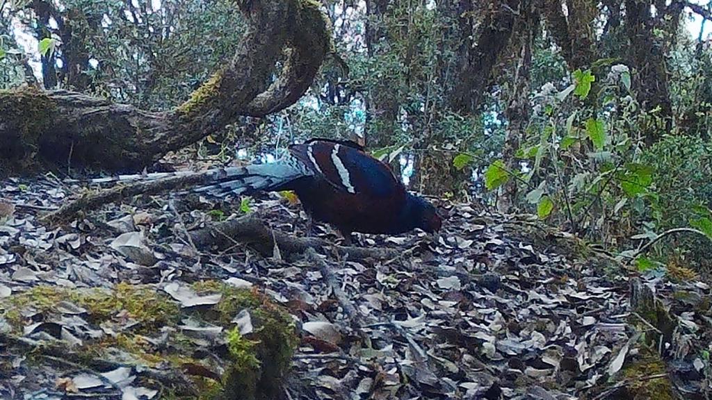 图为红外相机拍到的黑颈长尾雉在野外觅食的画面。(云南省保山市昌宁澜沧江县级自然保护区供图)