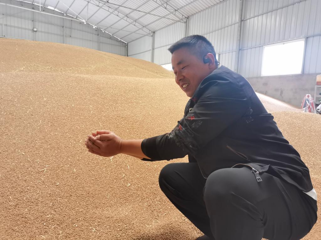 “80后”朱咸明种了大约1500亩小麦,收割完小麦后,紧接着就要播种高粱。在自家粮仓里,他告诉记者,据初步测算,小麦每亩产量1000斤左右,比去年增加约300斤。“今年一斤小麦卖1.2元,比去年高五六毛钱。与去年相比,今年种粮效益明显提高,咱们种粮人的信心更足了。”