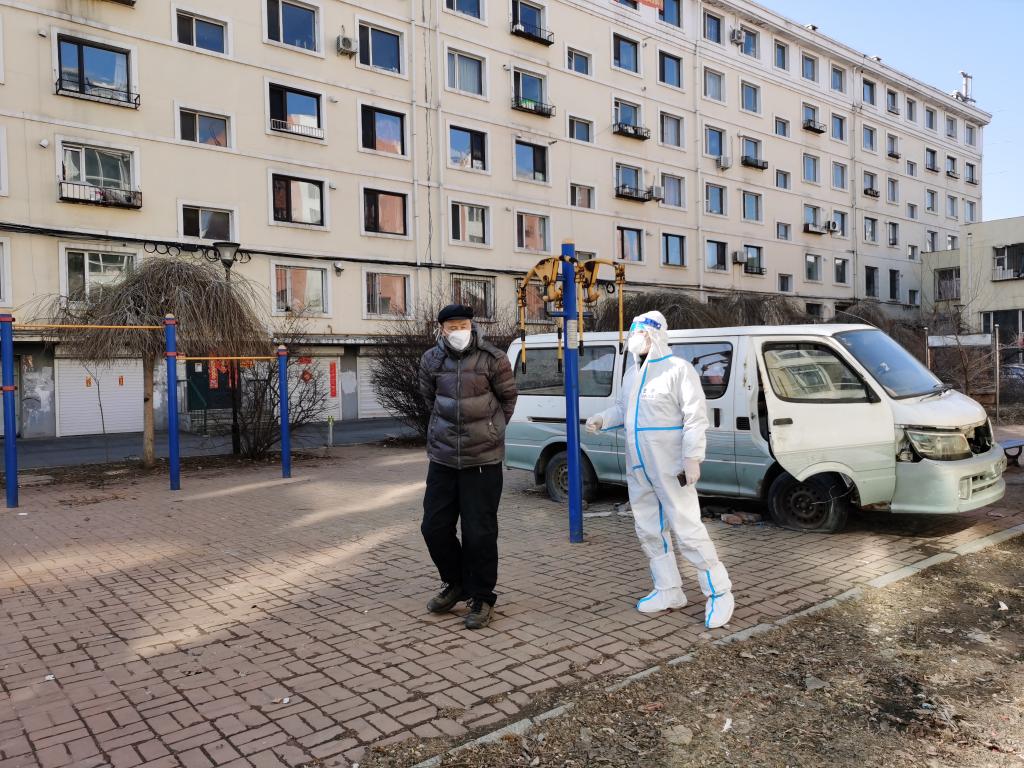 戚宏军(右)在抗疫一线(吉林市公安局提供)