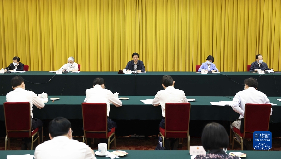 全国人大常委会副委员长沈跃跃主持座谈会,副委员长丁仲礼出席。