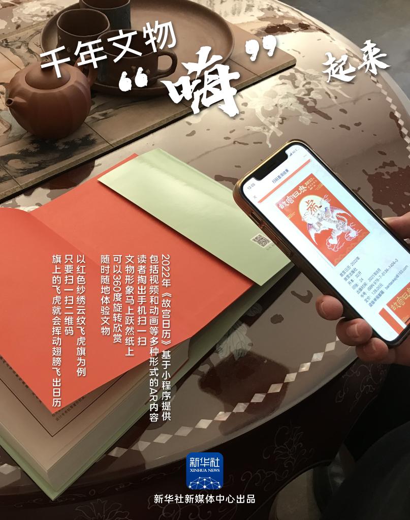 故宫出版社非遗编辑室主任徐海介绍,2022年《故宫日历》基于小程序提供包括视频、动画等多种形式、极具创意的AR内容,通过三维信息交互体验,在空间维度上给用户带来了巨大价值,打造独一无二的专属体验。读者掏出手机扫一扫,文物形象马上跃然纸上、可以360度旋转欣赏,随时随地体验文物“活起来”、把文物带回家的感受。