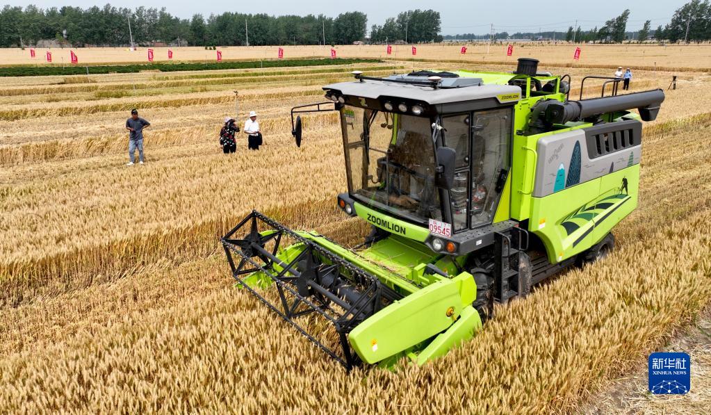 5月27日,在安徽省亳州市谯城区赵桥乡,一台无人驾驶收割机在麦田里收割小麦。