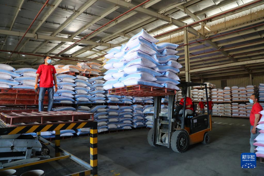 在位于埃及米努夫省萨达特城第七工业开发区的一家中资鸡饲料生产企业,当地工人正忙着将加工好的饲料装载到排队等候的卡车上。这些饲料将被源源不断地运往埃及的养殖场,为当地养殖业发展提供助力。