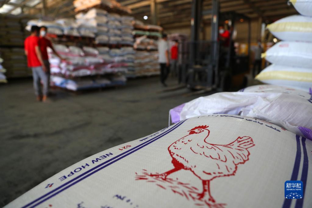 “‘新希望’生产的鸡饲料质量好,深受用户欢迎,”36岁的司机易卜拉欣·哈桑对新华社记者说,“我的车载重10吨,这段时间我每天要来拉3趟货。我们养鸡场的规模达到300万羽,其中三分之二饲料来自这里。”