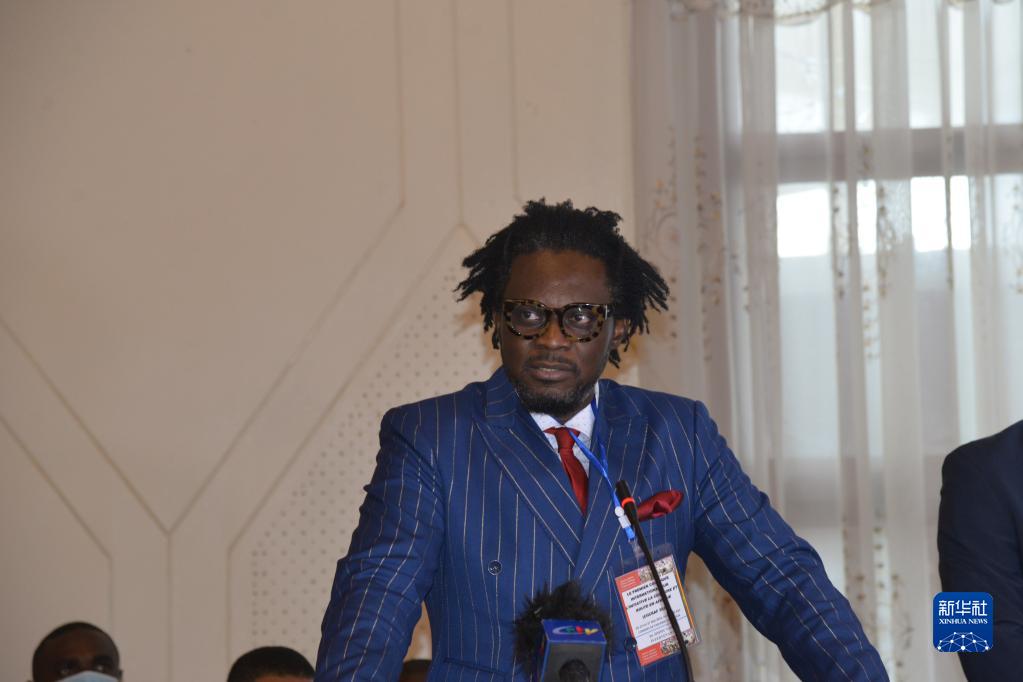5月26日,杜阿拉大学非洲比较哲学教授路易·科莫在喀麦隆首都雅温得参加非洲法语国家“一带一路”国际研讨会。新华社记者 罗毓 摄