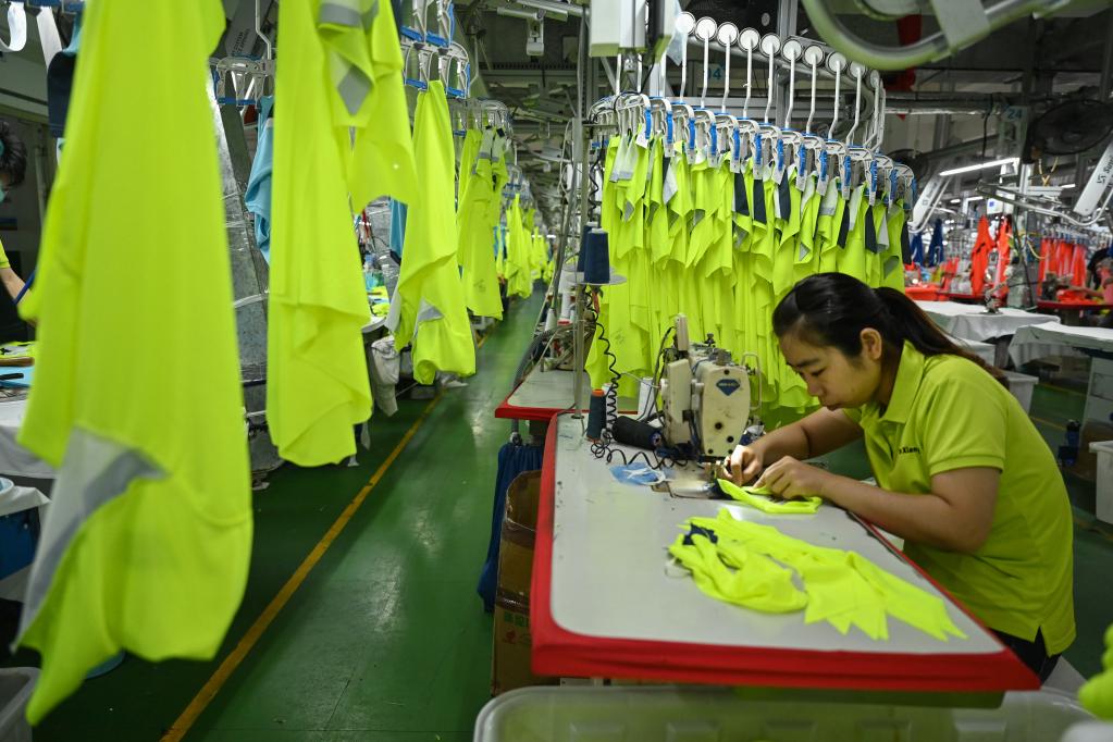 5月13日,工人在福建省晋江市361度服装生产车间忙碌。新华社记者 周义 摄